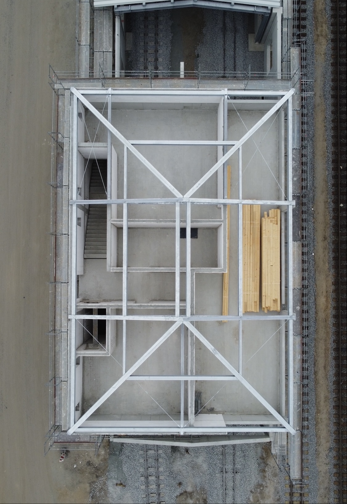 Gleichzeitig verfolgt das Projekt einen kuratorischen Anspruch: Technik soll nicht hinter verschlossenen Toren verschwinden, sondern sichtbar bleiben. Eine barrierefrei erschlossene Aussichtsplattform im Kopfbau ermöglicht gezielte Blickbeziehungen über das Gelände. Der Bahnbetrieb wird inszeniert, ohne seine Authentizität zu verlieren. Die konstruktive Herausforderung liegt dabei in der Umwelt: salzhaltige Seeluft, hohe Luftfeuchtigkeit und Windbeanspruchung durch die Ostseenähe. Entsprechend wurde die Stahlkonstruktion für die Korrosivitätskategorie C5 dimensioniert. Dauerhaftigkeit ist hier integraler Bestandteil des Entwurfs.