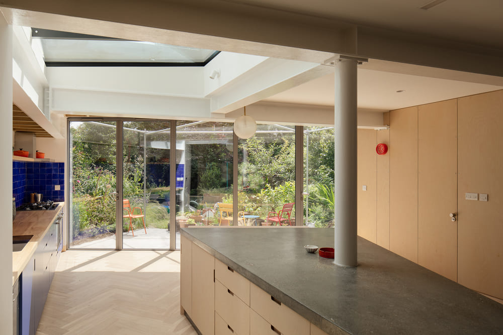 Als Stammkunden von Knott Architects wandte sich diese Familie aus Nord-London mit einer bekannten Herausforderung an die Planenden: Ein geliebtes Haus, dessen Bausubstanz, Leistungsfähigkeit und Beziehung zum Garten nicht mehr ihren Lebensvorstellungen entsprach. Statt lediglich mehr Wohnfläche zu schaffen, wurde im Rahmen dieses Projekts das Untergeschoss zu einem großzügigen, lichtdurchfluteten Wohnbereich umgestaltet, wobei verzinkter Stahl sowohl als tragendes Element als auch als raffiniertes Gestaltungsmittel zum Einsatz kam.