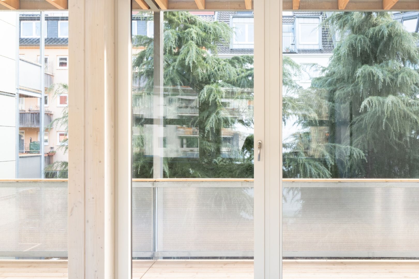 Der bewusste Verzicht auf Wärmedämmverbundsysteme und die Entscheidung für sichtbares Brettsperrholz im Inneren stärken das architektonische Konzept einer ehrlichen, lesbaren Konstruktion. Ergänzt durch extensive Dachbegrünung und eine integrierte PV-Anlage wird das Projekt zu einem Prototyp verantwortungsvoller Nachverdichtung.